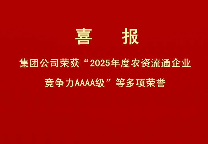 喜報(bào)|集團(tuán)公司榮獲“2025年度農(nóng)資流通企業(yè)競(jìng)爭(zhēng)力AAAA級(jí)”等多項(xiàng)榮譽(yù)